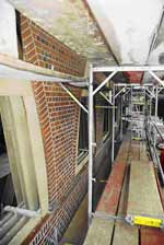 Sanierungsarbeiten, Gerüstbau, 150 m² Verblend- Außenmauerwerk, Spitzbogenfenster, umfangreiche Abfangkonstr. |